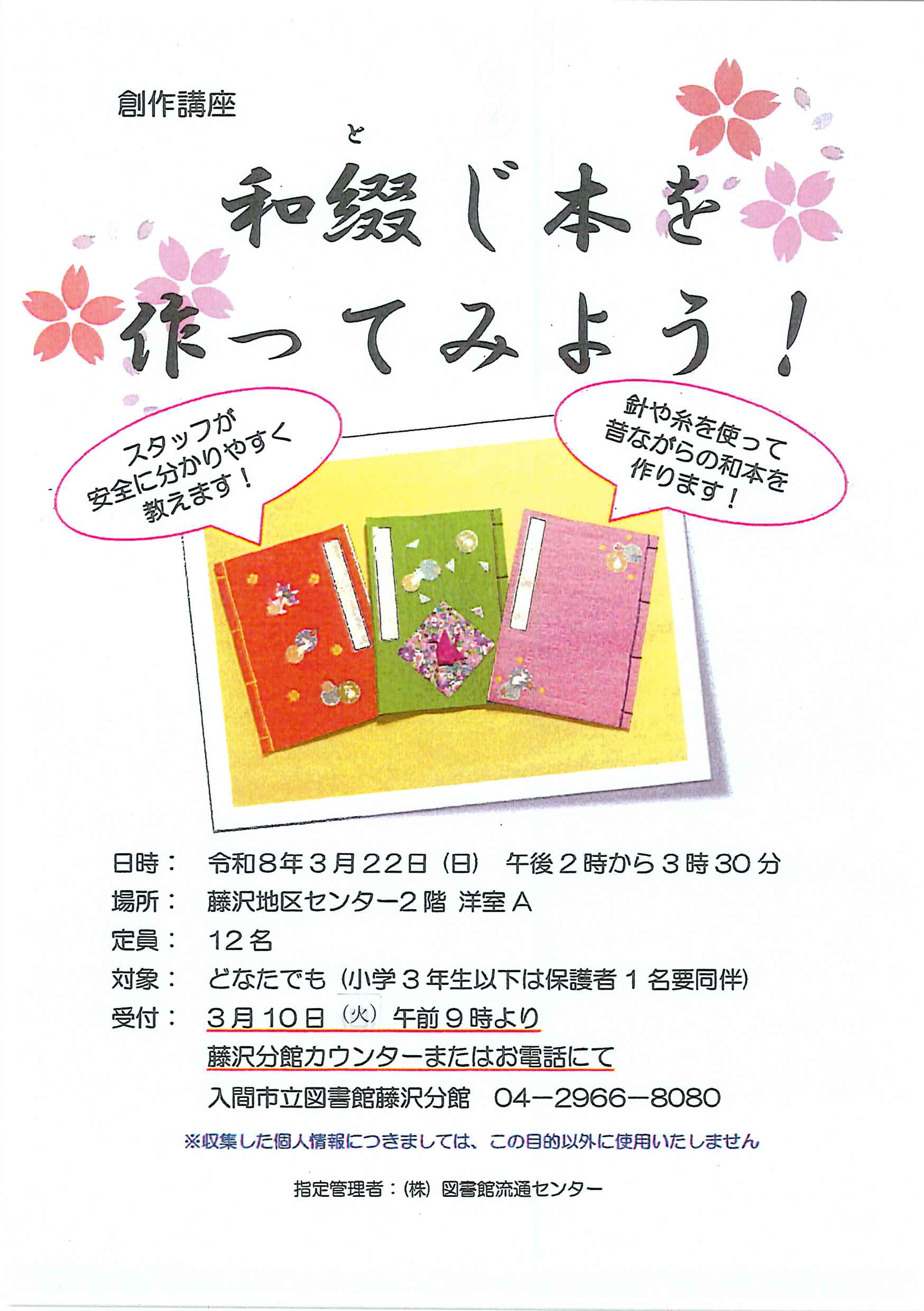 【藤沢分館】創作講座 和綴じ本を作ってみよう!について